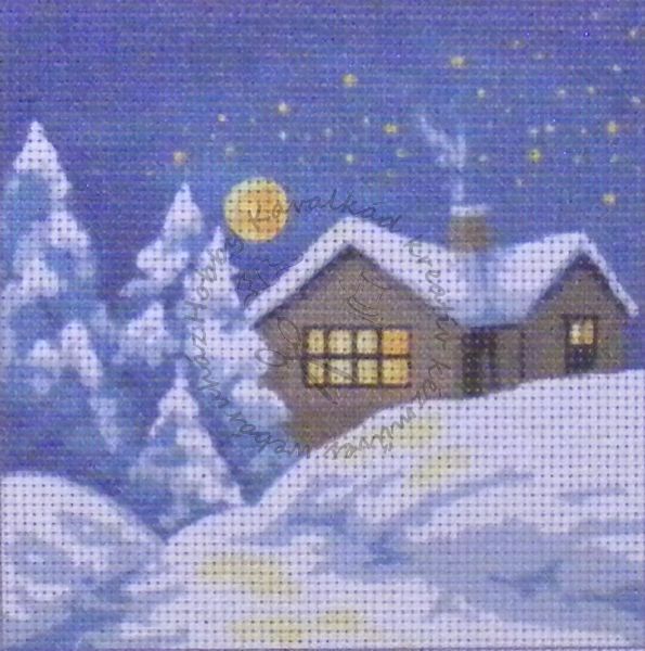 előnyomott gobelin - házikó a hóban 977