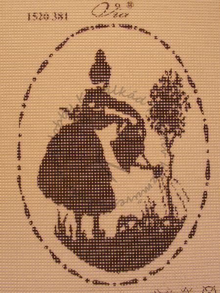 15 x 20 cm. Duplaszálas, fehér kanavára festett gobelin fonal nélkül. 44 öltés / 10 cm.