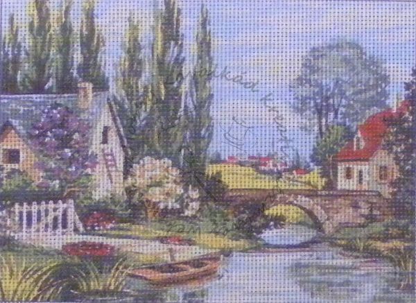 18 x 24 cm. Duplaszálas, fehér kanavára festett gobelin fonal nélkül. 44 öltés / 10 cm.