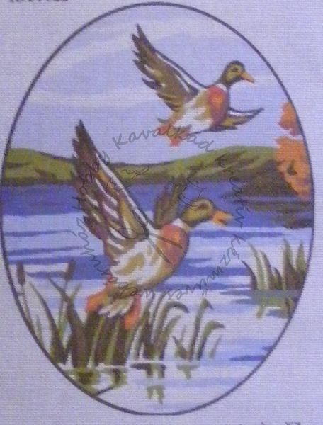 18 x 24 cm. Szimplaszálas, fehér tűgobelinre festett gobelin fonal nélkül. 72 öltés / 10 cm.