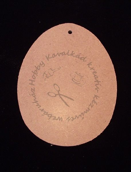 3 mm vastag MDF lapból készült 14,5 x 11 cm-es forma, 4 mm-es furattal a felső részen.