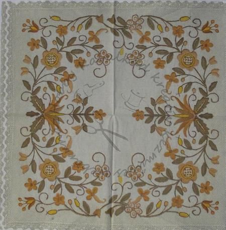 Szalvéta barna hímzés drapp