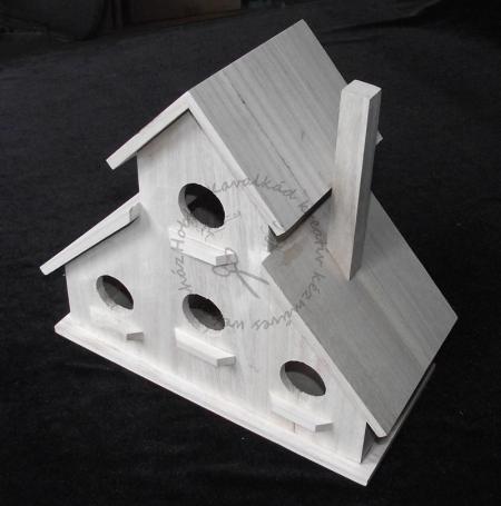 A talapzat: 28 x 13 cm. Teljes magassága (a középső ház csúcsánál mérve): 25 cm.