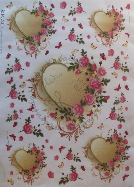 Kalit rizspapír SANV 0014 szivek rózsaszín rózsákkal
