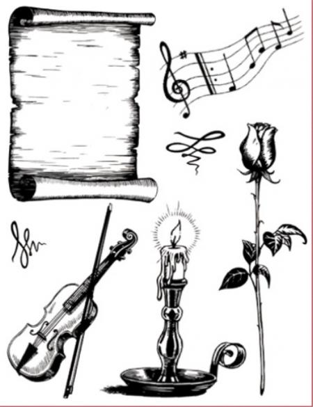 14 x 18 cm-es lapon 7 átlátszó, szilikon pecsételő. Használatához akril blokk szükséges. Az átlátszóság a könnyebb, pontosabb pecsételést teszi lehetővé.