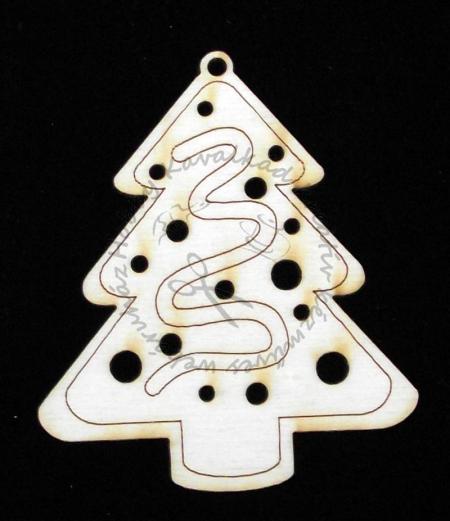 Fa figura karácsonyfa gömbökkel, füzérrel