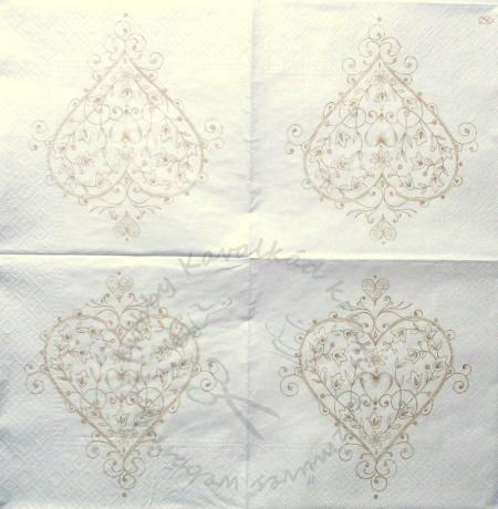 Szalvéta gyöngyházfehér alapon arany cirádás szív