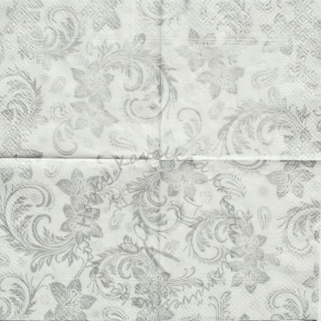 Szalvéta fehér alapon ezüst virágos-kacskaringós