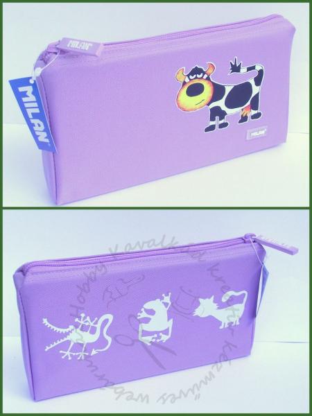 Méretei: 21 x 11,5 x 3 cmAnyaga: erős poliészter.Zippzárral zárható. Színei: szép orgonalila, tarka boci mintával.Az asztalon rendkívül kis helyen elfér, viszont nagy mennyiségű, különféle írószer elfér benne.