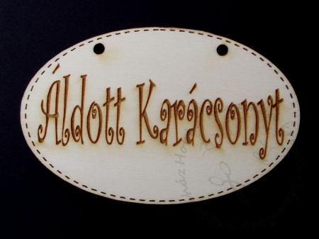 Fa figura ovális tábla - Áldott Karácsonyt, kunkori betűkkel