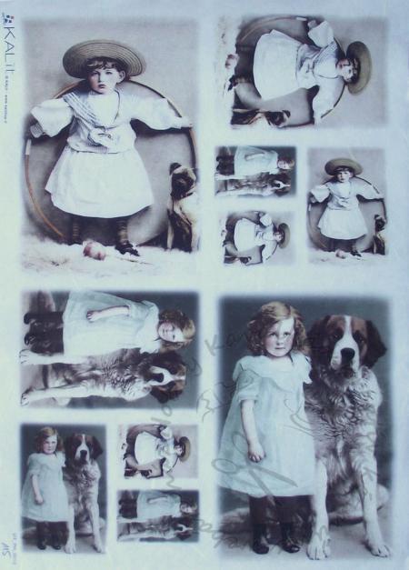 Kalit rizspapír VITPH 0012 Vintage, Kislányok bernáthegyi kutyussal