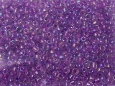 Kásagyöngy 12/0 20 g, szivárványos, átlátszó, színes közepű világos lila