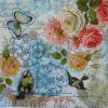 Szalvéta Rózsák, madárkák, kék kacskaringós alapon
