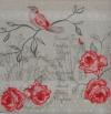 Szalvéta Rózsa, madárka, szürke írásos háttérrel