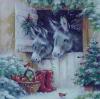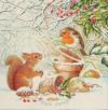 Szalvéta K Mókus és vörösbegy havas cserepekkel