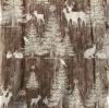 Szalvéta Szürkés fa mintázaton fehér stencil mintás fenyők, állatok