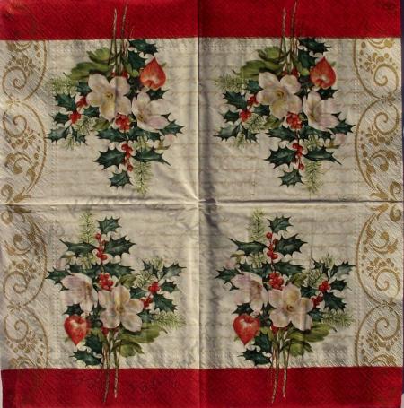 Szalvéta Téli csokor arany szegélydísszel