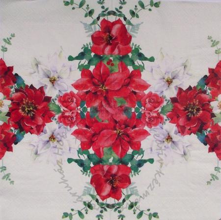 Szalvéta Piros és fehér mikulásvirágok szegélyen