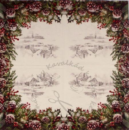 Szalvéta Tobozos bogyós szegélydísz házikóval