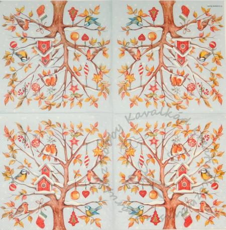 Szalvéta Madárkák feldíszített fán, hóesésben