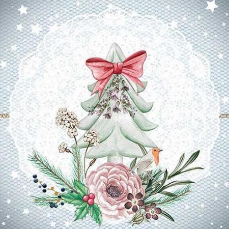 Szalvéta - 13495 Karácsonyfa csipkés háttérrel