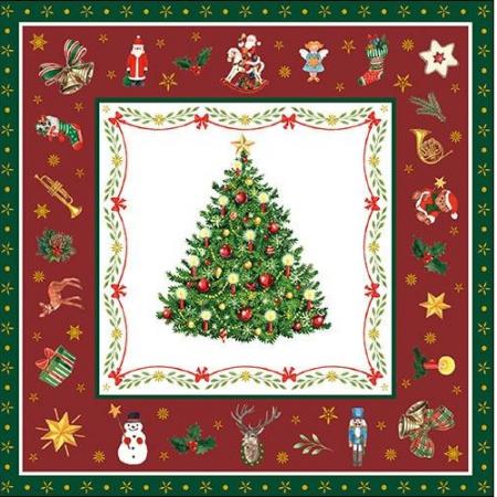 Szalvéta - 14517 Karácsonyfa mintás keretben, bordó