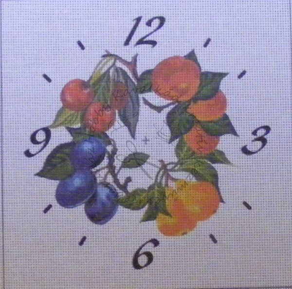 25 x 25 cm. Duplaszálas, fehér kanavára festett gobelin fonal nélkül. 44 öltés / 10 cm.