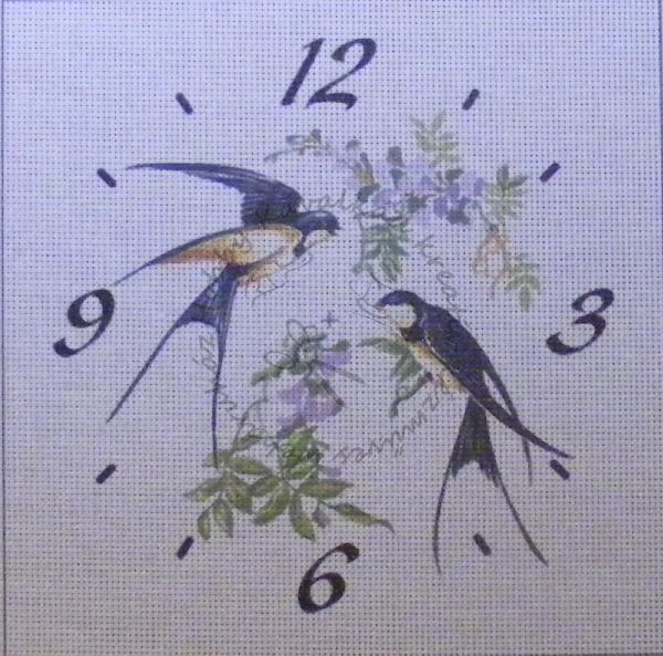 25 x 25 cm. Duplaszálas, fehér kanavára festett gobelin fonal nélkül. 44 öltés / 10 cm.